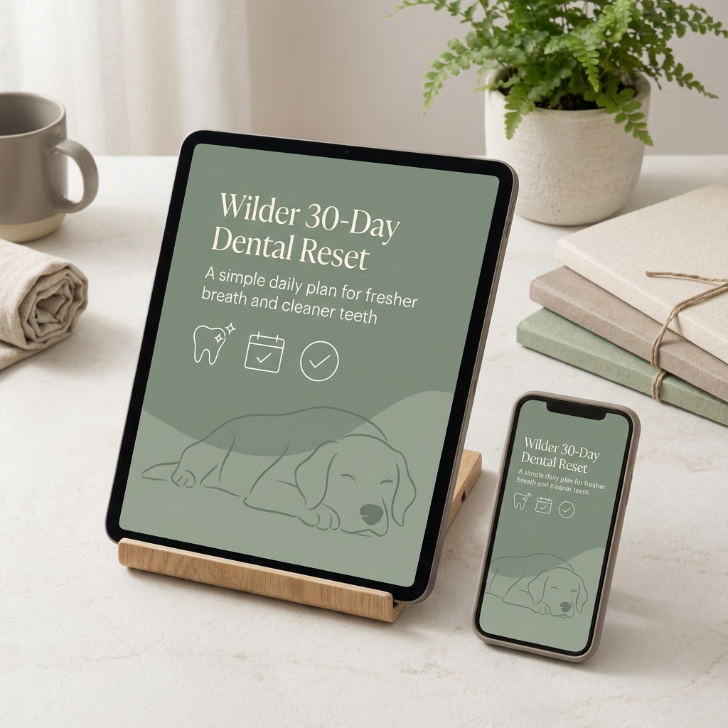 Bad breath isn’t just unpleasant. It’s often a sign of buildup and imbalance in the mouth. Wilder Daily Dental supports cleaner teeth and fresher breath using a gentle, food-based routine designed for daily use, even for pets with sensitive stomachs.